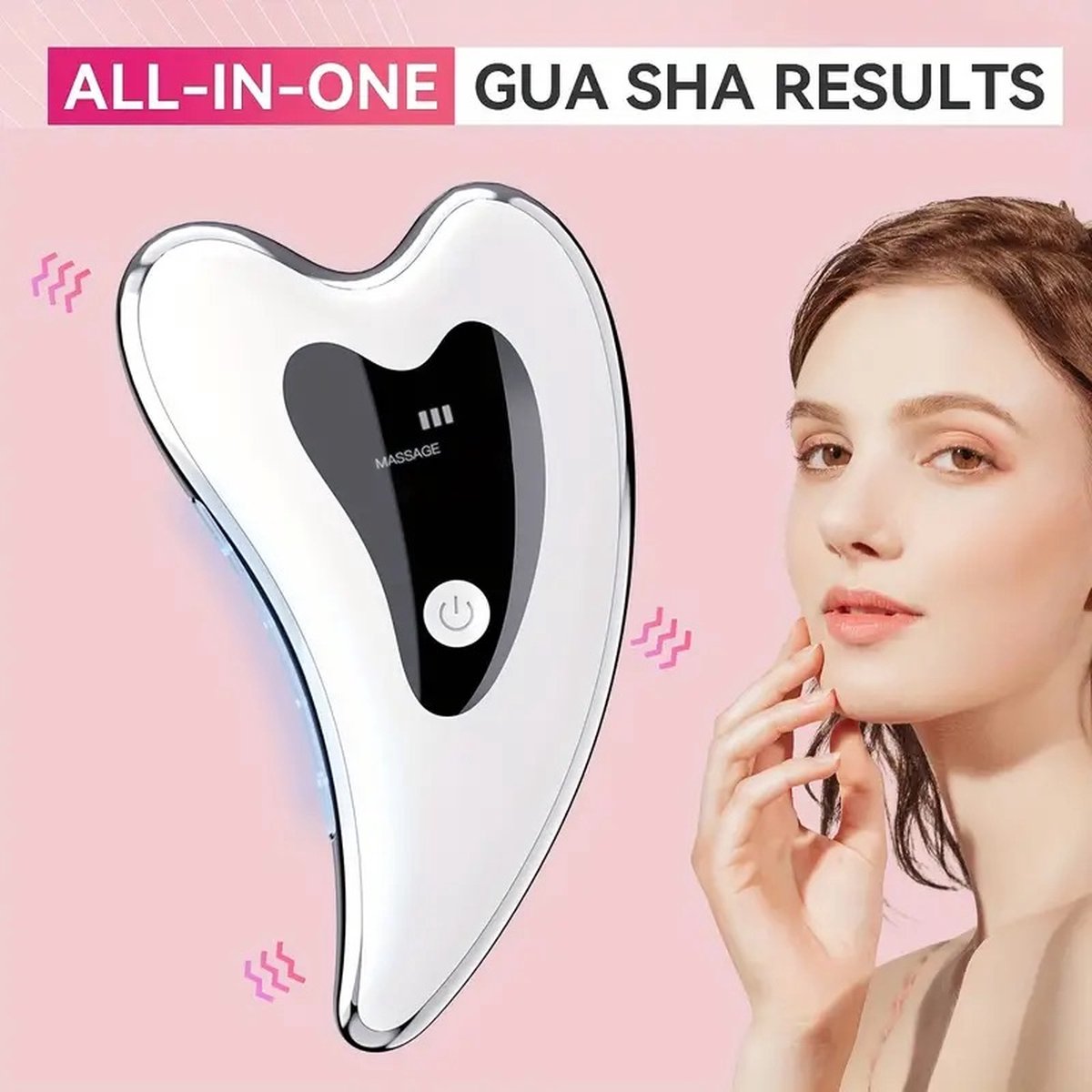 Modelleer, lift en laat uw huid stralen met de elektrische Gua Sha-gezichtsmasseerder, een moderne twist op het eeuwenoude schoonheidsritueel.