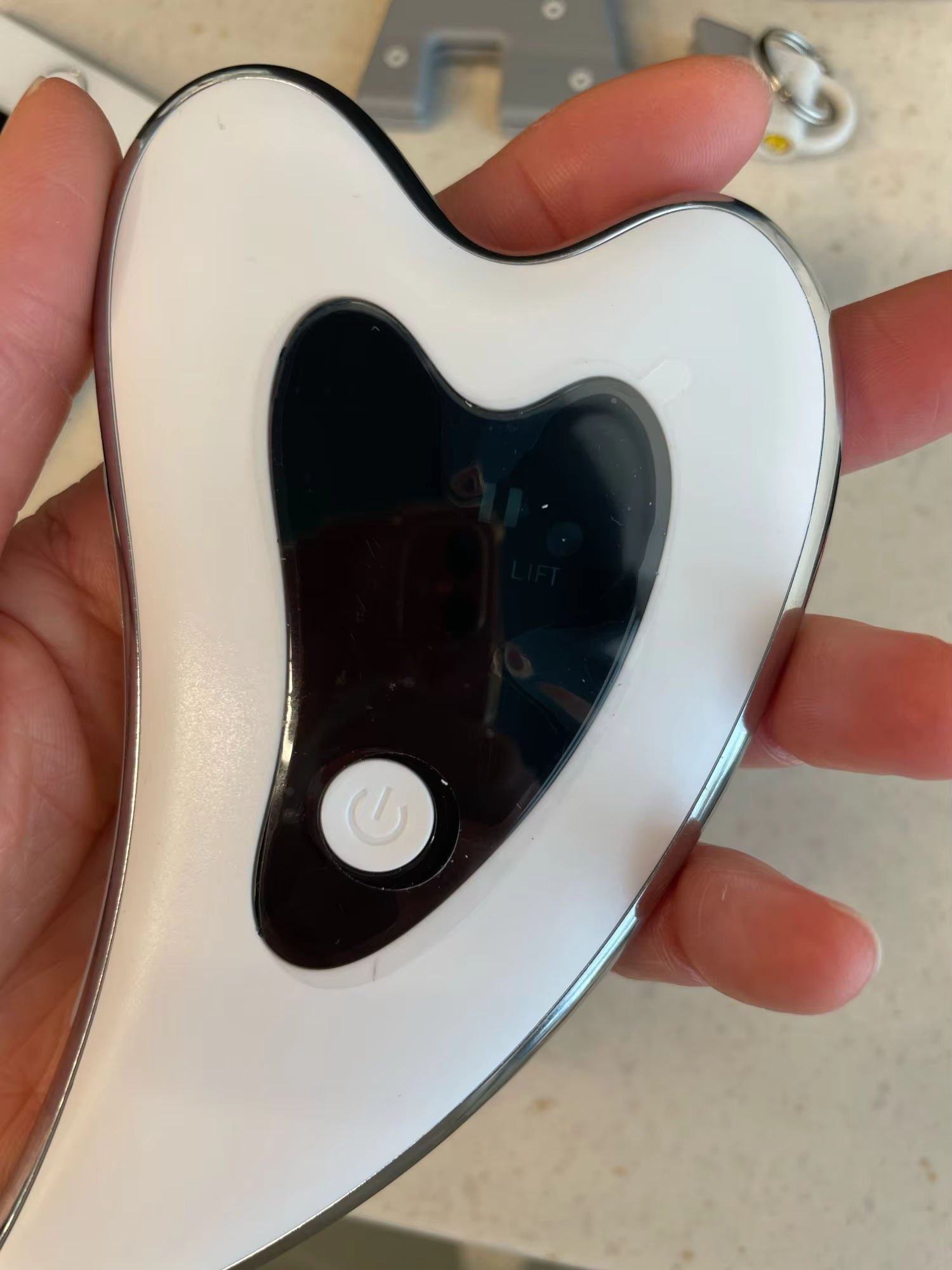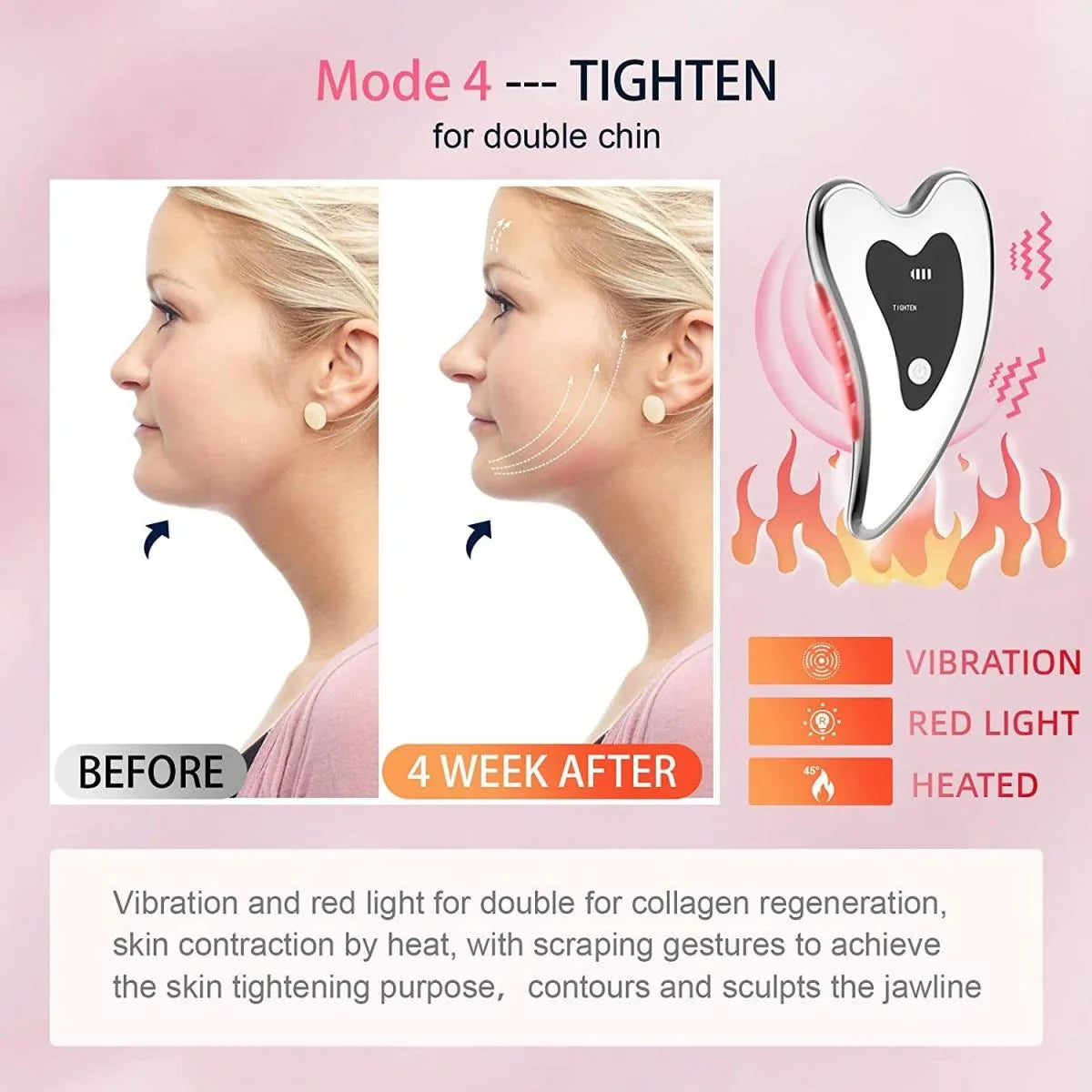 Dankzij rustgevende warmtetherapie en zachte trillingen helpt het apparaat rimpels, wallen en spanning te verminderen, terwijl het de gezichtscontouren lift en definieert.